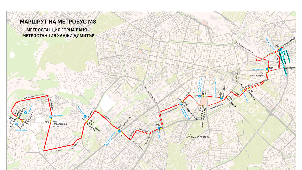 Временна автобусна линия М3 ще вози пътници по Линия 3 на 8 и 9 ноември